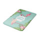 En livfull tropisk baddröjsmatta med två rosa flamingos, frodiga palmblad och rosa hibiskus- och plumeria-blommor runt en anpassad monograminitial i en elegant ram. Den glada robin äggblå bakgrunden ger en fräsch, ö-inspirerad känsla till vilket badrum som helst. En vacker accent för strandhus, semesterhem eller tropiskt-tema badrum. Initialen är helt anpassningsbar.