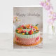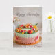 Detta vackra födelsedagskort har en pastelljus tropisk tårta prydd med livfulla hibiskusblommor, frodig grönska och färgglada fruktaccenter. De mjuka gröna och rosa nyanserna kombinerat med intrikata rördetails skapar en fräsch, glad design som känns både elegant och festlig – perfekt för att fira en speciell födelsedag med en touch av ö-inspirerad charm.