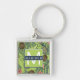 Tropisk frukt skissar på grönt mönster fyrkantig silverfärgad nyckelring