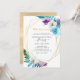 Färggliv invitation till 50-års bröllopsdag med tropiska blad i akvarell, geometrisk ram i guld och elegant typografi.