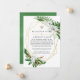 Grön och gul geometrisk tropisk reducerad bröllopsinbjudan med vita magnolior. Under dessa osäkra tider kan det hända att du måste hålla ett mindre bröllop än vad som ursprungligen planerats. Detta annonskort tar bort det pinsamma och tar en tyngd av din hjärna! Du kan dessutom ge möjlighet att gå med dig på en virtuell ceremoni.