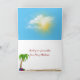 Söt sand snöman med en struthatt, solglasögon och julpresenter under en julpalmer och lampor.