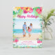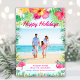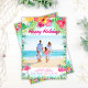 Skicka tropiska semesterhälsningar med detta ljusa hawaiianska fotokort. Funktioner "Glad Jul" i script typografi, ditt favorit kustfoto inramat med akvarell hibiskus blommor och palmblad och din personliga semesterhälsning. Ett roligt tropiskt julkort från Cherry Lane Designs!