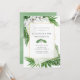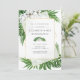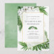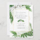 Trendig salvia grön och vit akvarell tropiska blad och vita magnolior brudtärnor lunch inbjudan med guld geometrisk ram.