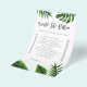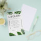 Bridal Shower "Skulle hon hellre"-spelkort med tropisk grönskedesign, palmlövmönster och tvåkolumnstabell med anpassningsbara alternativ.