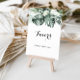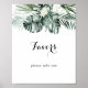 Denna tropiska grönska vita blommiga favörskylt är perfekt för ett rustikt bröllop eller brudvisning. Designen har gröna palmblad buketter med vita älskliga blommor.