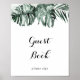 Denna tropiska grönska vita blommiga gästbokssköld är perfekt för ett rustikt bröllop eller brudvisning. Designen har gröna palmblad buketter med vita vackra blommor.