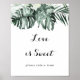 Denna tropiska grönska vita blomsterkärlek är sött tecken är perfekt för en rustik bröllopsfest eller brudvisning. Designen har gröna palmblad buketter med vita älskliga blommor.