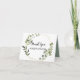 Detta tackar tropiska gröna löv dig att card är perfekta för ett enkelt bröllop. Designen presenterar räcka-målade härliga gröna löv som smyckar en guld- geometrisk ram.