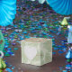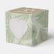 Blek grönt lämnar med guld-accenter på bakgrunden till en grönt på bleken runt de här fyrkantiga presentlådorna med utklippt hjärta (öppna, men inte täckta) - perfekt till paket dina bröllopsfavoriter, party favors, företagsgåvor, företagsgåvor och mycket annat. Personlig med dina egna uppgifter eller hälsning. Fler lådor, mjukpapper och MATCHING-artiklar i vår butik.
