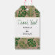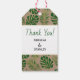 Tropical löv grönt och guld rustic bröllop Tack presenter märkre. Denna vackra utformning visar löv av Split Löv Philodendron (Monstera deliciosa) eller Swiss Cheese Plant och handflatan löv i grönt med guld kontur på kraftutseendet pappert. Er text är i ett vitt ram med guld kontur. Det är perfekt för en contemporary tropisk kuststrand eller ett destinationsbröllop.
