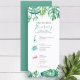 Inbjudan er brudens sida till ett sol-torkat tropiskt bachelorette helg med våra vackert utarbetade ambulerande inbjudningar. Designat för att ange tonen för en oförglömlig flickas helg i Miami, är dessa inbjudningar originalfärgade konstverk, inklusive en charmig rosa flamingo, en uppfriskande cocktail, en serenhavssköldpadda och lush monstera handflatan löv, allt i vibrerande skugga av grönt och turkoblått. Detaljerna i helg visas elegant i en blandning av handskrivna skript och skarp sans serif-typografi, och skapar det enkelt för dina gäster att följa det roligt-fyllda schemat. De här inbjudningarna är idealiska för strandbröllop, tropiska getingdagar eller restemeterade bachelorette firande. De ger en kustfläkt till din evenemangsplanering. Om du vill ha fler inbjudningar till kandidat- och målgruppen, tillsammans med bröllopsprogram som kompletterar detta tema, kan du besöka vår butik på www.zazzle.com/dotellabelle. Förbered dig för ett minnesvärt firande med våra sakkunnigt designade resvägar!