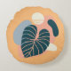 Tropical Gult and Blue Abstrakt Round Pillow Det här är perfektens tillägg till trendiget för din dagliga décor stil. Den här designen har en solid gult på båda sidor. Framsidan är accentuerad med en ritning av den tropiska abstrakten löv. Besök vår butik för att samordna tillbehör.