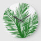 Enkel tropisk handflatan-träd lämnar väggavtagarklocka i naturlig grönt och vit för att lägga till en bit av stranden till din hemdekanter. Dekorera alla vardagsrum, badrum eller kök med en aning av tropikernorna till ditt strandhus.