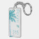 Det stilfulla tropiska themed hotellet, gästgivargårdnyckelring, med diagram av en aqua färgade palmträdet, mot en vitbakgrund, på båda sidor. Personifiera aquatexten för att passa dina behov.