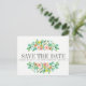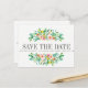 Utkastad för att samordna med vår Tropical Hibiscus vattenfärg blommiga brölloppskollektion, Omgiven av känsliga målade sommarblommor och tropiska blad på en vit bakgrund, är denna design iögonfallande och mycket vacker. Modern och enkel save the date postkort visas i mitten bland bladverket och en mall-postkort finns på baksidan. Alla textstilar, färger och storlekar kan också ändras för att passa dina behov