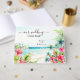 Fånga essensen av din strandbröllop med vår Tropiska Hibiskus Strand Destination Vattenfärg Bröllopsgästbok! Denna exklusiva gästbok har en fantastisk vattenfärg-målning av en tropisk ö, komplett med en lugn strand, svajande palmer och en frodig landskap. Prydd med livfulla hibiskusblommor i nyanser av orange-röd och rosa, är denna gästbok det perfekta sättet att bevara de hjärtliga meddelandena och minnena från din speciella dag. En vacker souvenir som för liv i den förtrollande atmosfären av din tropiska firande, vilket gör den till en skattad minnessak i många år framöver.