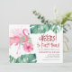 Fira 40-årsdagen med stil med denna födelsedagsinbjudan för tropisk fest, perfekt för roliga och festliga idéer för 40-årsfirande! Med handmålad akvarellkonst av en rosa flamingo och frodig grönska är detta födelsekort idealiskt för nationella rosa flamingo-dagen, en strandfest i Florida eller tropiska födelsedagsfestidéer som en poolside luau.