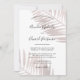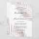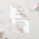 Den tropiska inbjudan till handflatan bröllopsinbjudan innehåller ett modernt rosa handflatan-utskrift med trendig-skript.