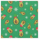 Lycklig jul i juli! Mörk grönt väv med vitt snöflingor och söt avokados med tomte och älvhattar. Perfekt för att skapar din sommarstrandutrustning eller dekorationer