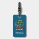 En bagagetagg med en bild av säsong helgdag. En tropisk träd i handflatan dekorerade i Festive ljus med en stjärna överst. En stor röd och vit candy cane som sticker ut ur sanden. Julklapp under träd. Viktigt och roligt.