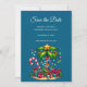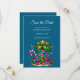 Spara datumkortet med en bild av säsong helgdag. En tropisk träd i handflatan dekorerade i Festive ljus med en stjärna överst. En stor röd och vit candy cane som sticker ut ur sanden. Julklapp under träd. Viktigt och roligt.
