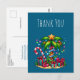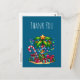 Tack för vykortet med en bild från säsong helgdag. En tropisk träd i handflatan dekorerade i Festive ljus med en stjärna överst. En stor röd och vit candy cane som sticker ut ur sanden. Julklapp under träd. Viktigt och roligt.