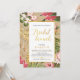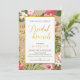Denna unika bröllopsbrunch-inbjudan har ett vackert tropiskt mönster med gyllene typografi på en kraftstrukturbakgrund.