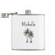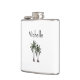 Tropiska kustkolv med enkel utformning av handflatan träd. Skriptletten elegant Black kan anpassas med din egen text. En strand inspirerade till tillbehör till din favoritdryck på hetten.