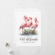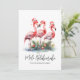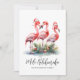Fira högtiderna med lite surf och sand med detta festliga tryck med tre rosa flamingos som bär tomteluvor och ornamentdetaljer vid basen. Önska dina nära och kära en glad högtid på beachig stil. Oavsett om du bor på en strand eller i en tropisk plats som Florida, Hawaii, Bahamas eller bara älskar beachlooken, är detta tryck för dig! Detta tryck har en rustik eller sliten look i akvarellstil. Det har också en blandning av enkla typsnitt och scripttypografi för en avslappnad men elegant look. Perfekt för att lägga till en rolig och tropisk twist till din juldekoration. Festlig Akvarell Rosa Flamingo Tropisk Strand Mele Kalikimaka Högtid Julkort. Finns som tryckt kort eller som nedladdningsbart digitalt kort som du kan skicka via