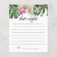 Luau- eller hawaiiskt strandtema möhippa/möhippa nattavrådskort med vattenfärgad illustration av tropiska grönområden som rosa kung-proteablomma, monstera löv och handflatan löv. Be gästerna fylla i det här kortet under duschen. Det kommer att bli en underbar keepy! Perfekt till en sommardusch.