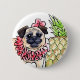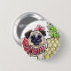 En mops på semester tycker om tropiska lei och ananas för en hibiskus.