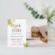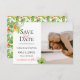 Tropiska öns akvarell blommor och lövverk, Foto Bröllop Spara datum-kort. Anpassa textens teckensnitt, stil, färg och storlek.