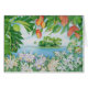Akvarell av den tropiska ön med mango, kakao, brödfrukt och orchids.