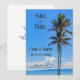 Oavsett om ditt bröllop är en tropisk resedestination eller bara ett strandtema, sätter denna tropiska ö med palmer och det blå havet tonen. Rika blå färger på himlen och vattnet omger två gröna palmer i denna tropiska bröllopsserie. Anpassa enkelt till dina evenemangsuppgifter. Fullständiga bröllopsdetaljer finns på baksidan, justera vid behov eller ta bort helt.