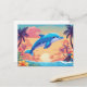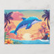 Tropisk ö-solförnedgång och delfin vykort