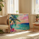 Förvandla din yta till en lugn kustparadis med denna livfulla tropiska havssolnedgång på canvas väggkonst. Med en frodig palmträd, färgrik solnedgångshimmel och lugnande turkosa vågor, ger denna strandmålning värme och avkoppling till alla rum.