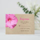 En ljus hibiscus-blomma från rosan accentuerar detta svarskort på en strand- och sandbotten, skapar perfekten för stranden, tropiska områden, destinationer, hawaiiska eller sommartid bröllop. Denna OSA accentueras med rosa och brun typ, men finns också med brun typ om det föredras. Detta koordinerar perfekt med den tropiska bröllopsinbjudan på strand och rosa.