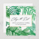 Elegant kalligrafi med chic vattenfärg tropiska palmblad ändra datum bröllopet inställt meddelande. Detta vackra tillkännagivande är ett enkelt sätt att låta inbjudna gäster veta att datumet för ert bröllop ändras på grund av oförutsedda omständigheter.
