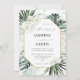Skicka dina gäster en vacker bröllopsinbjudan med din vackra Tropisk Palm & Vit Blommig Bröllopsinbjudan.