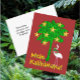 Gröna palmer och Mele Kalikimaka-text på en rik julröd bakgrund. En rolig tropisk look för dina julkort med tropisk jul. Anpassa texten på framsidan och insidan om du önskar.