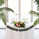 För evigt börjar nu. Den moderna vita fonten och tropiska palmer kontrasterar mot en mörk bakgrund som anspelar på en stjärnklar natthimmel. Texten är redigerbar för alla evenemang med hjälp av den enkla mallen. Kolla in EmmyINK:s butik för ytterligare koordinerade tillbehör och dekorationer!