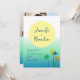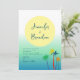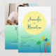 Fira din kärlek under solen med denna tropiska ö-strandbröllopsinbjudan, perfekt för sommar- eller destinationbröllop. Med färgglada palmer, starkt solsken och modern handskriven kalligrafi fångar denna design den bekymmersfria glädjen på din speciella dag. Baksidan innehåller ett foto av paret, plus en praktisk QR-kod för RSVP och åtkomst till bröllopswebbplatsen, som kombinerar skönhet med funktionalitet. Sätt tonen för en livlig, minnesvärd fest med denna personliga ö-inspirerade inbjudan som gästerna inte kommer att glömma.