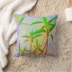 Den tropiska teckningen i pastel färg på detta Dekorativ kudde är gjord av ett originalfoto av ZoeSPEAK. Fotot tittar upp på växternas långa, tunna stammar medan solljus lyser genom deras ljust grönt löv. Den ljusblå bakgrunden är förtjust i gult och laxens rosa.