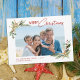 Kustens tematiska tropiska jullkort innehåller en fotomall som är inramad i två hörn med stjärnfisk som är dekorerad med löv, bär och gräs sprigs, med ett modernt handskriftsskript för hälsning.