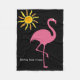 Tropisk flamingo-filt för rosa i en grafisk design som innehåller en ljus och gladlyst sol, rosa flamingo med en svek och många stil