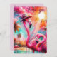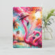 Tropisk Rosa Flamingos Handflatan Träd Sol Flaming Tack Kort