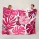 Tropisk Rosa Hibiscus och Monstera Löv Mönster Fleecefilt