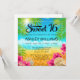 En tropisk strand, söt 16 födelsedagsfest inbjudan. Med en modern luau-design med handflatan träd grenar, rosa Hibiscus blommor och siashells på en tropisk strand.