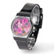 Tropisk Rosa Hibiscus - Utformning av läder och Bl Armbandsur
